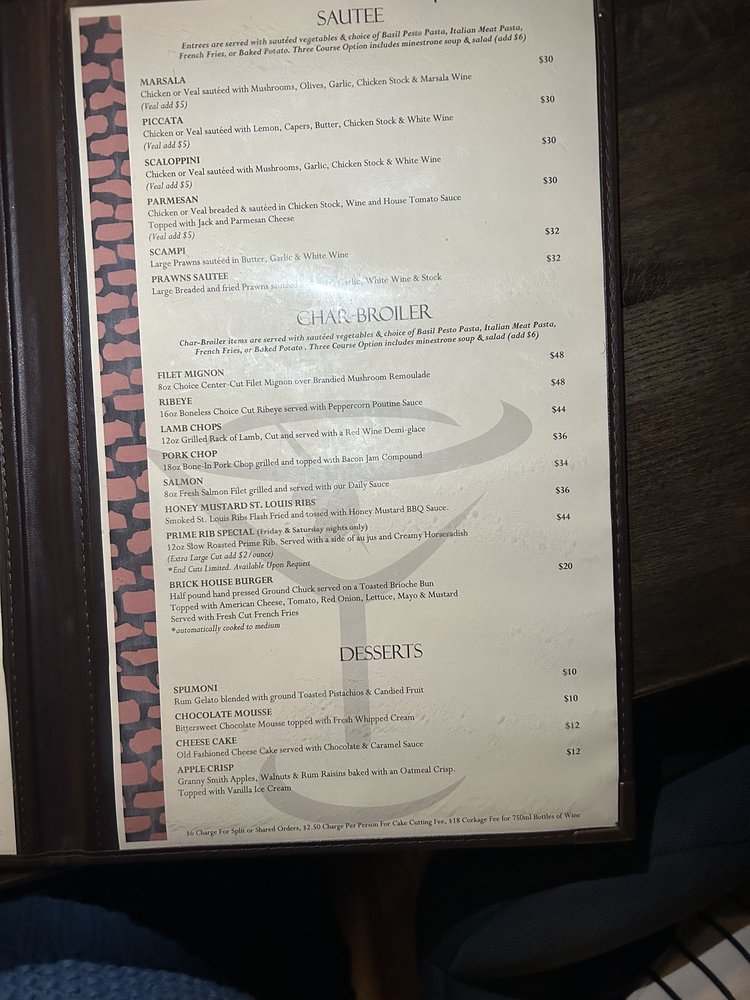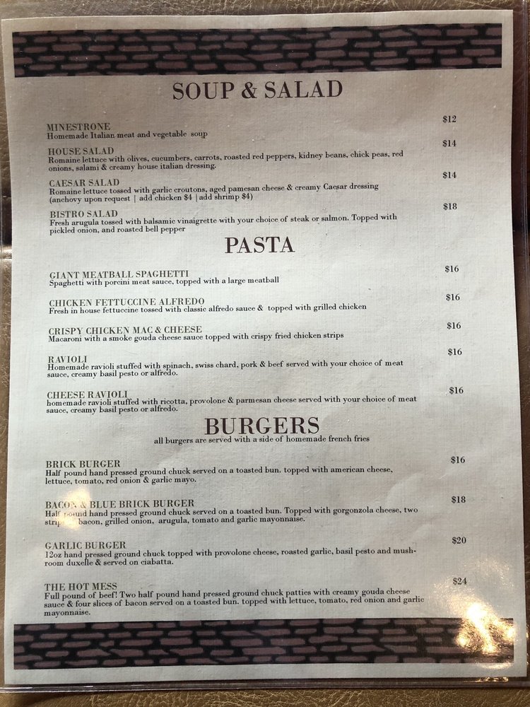 Brick House Restaurant Menu